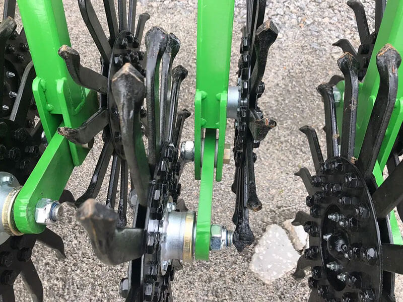 Диск з зубами розпушує ґрунт, таким чином запобігає запізніле проростання зерна. Так само розпушення сприяє рівномірному розподілу кисню і вологи в ґрунті, сприяючи зміцненню і росту рослини та далі її більш стійкої до посухи. 15-ть зубів на диску кріпляться двома болтами, які проходять через диск наскрізь, що дає можливість швидкої заміни зуба ані всього диска місці кріплення зуба диск загнутий під 45º, що запобігає зміщенню зуба в різні боки та дає можливість використовувати агрегат в різних умовах та ґрунтах.