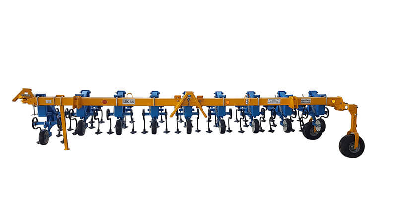 КПК-5,6 состоит из секций, на каждую секцию установлено 5 вибростоек со 150 мм стрельчатыми лапами с перекрытием не менее 50 мм. В зависимости от расстановки рабочих органов меняется ширина междурядной обработки от 450 до 700 мм. Секция крепится на раму с помощью пантографного механизма, и благодаря увеличенной массе секции идеально копирует почву и выдерживает заданную глубину.