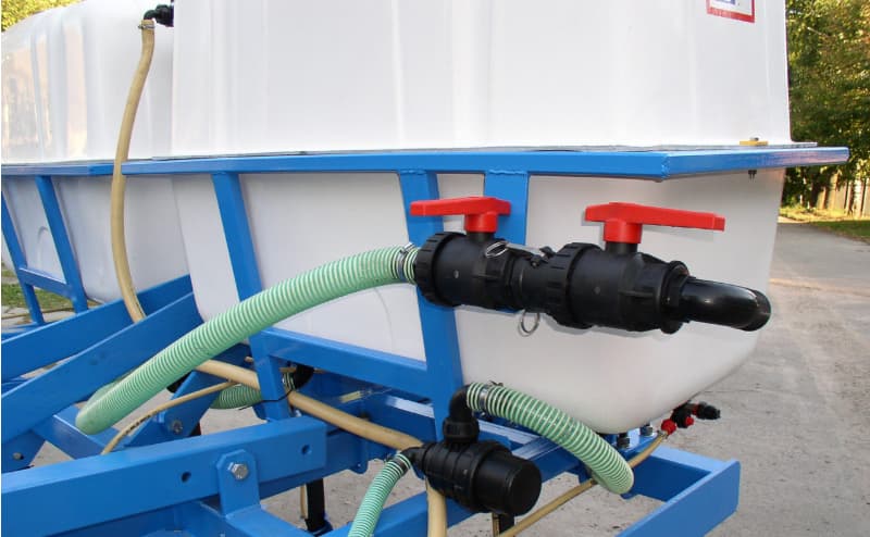 - отсекающие устройства на форсунках срабатывают в случае снижения давления в системе ниже 0,5 атм. Их наличие блокирует вытекание рабочей жидкости во время разворота или остановки культиватора. А экологическую безопасность культиватора обеспечивают герметические муфты для заправки агрегата;