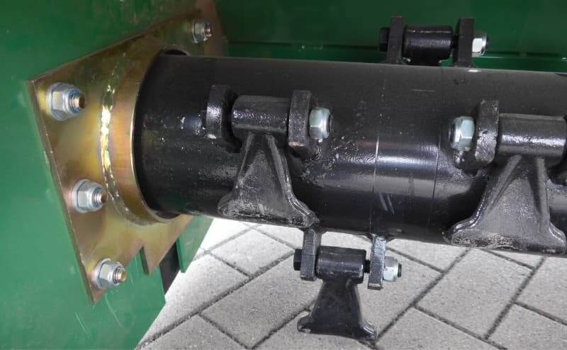 Данная модель имеет боковое механически регулируемое смещение в левую и правую сторону от оси движения трактора. Для выполнения трудоемких работ в качестве рабочих органов рекомендуются молотки, для травы и более мягких растительных остатков – Y-образные ножи.
