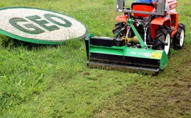 На мульчере GK установлен редуктор с муфтой свободного хода, зубчатые ремни, регулируемый по высоте задний каток с грязесъемником, боковые лыжи, передние защитные цепи, защищающие от выброса инородных тел при работе измельчителя.