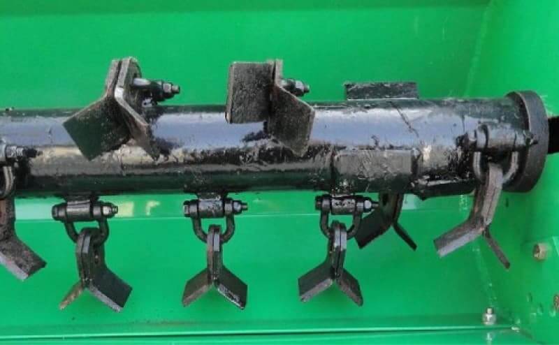 Данная модель имеет боковое механически регулируемое смещение в левую и правую сторону от оси движения трактора. Для выполнения трудоемких работ в качестве рабочих органов рекомендуются молотки, для травы и более мягких растительных остатков – Y-образные ножи.