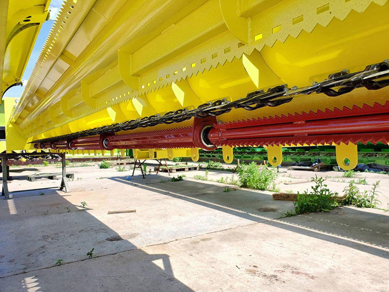 - Нове розташування приводу шнека і мотовила в правій боковині жниварки подовжує термін експлуатації скорочує навантаження.