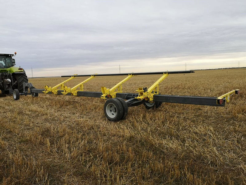 Універсальний двоосний візок для перевезення жниварок “Carrello 2 axes” розроблений для більшої стійкості і надійності при перевезенні прибиральної техніки вагою до 5 тонн і шириною захоплення до 12 метрів.
