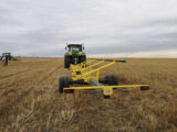 - На стоянці візок використовується як допоміжний засіб для навішування / зняття жатки на комбайн.