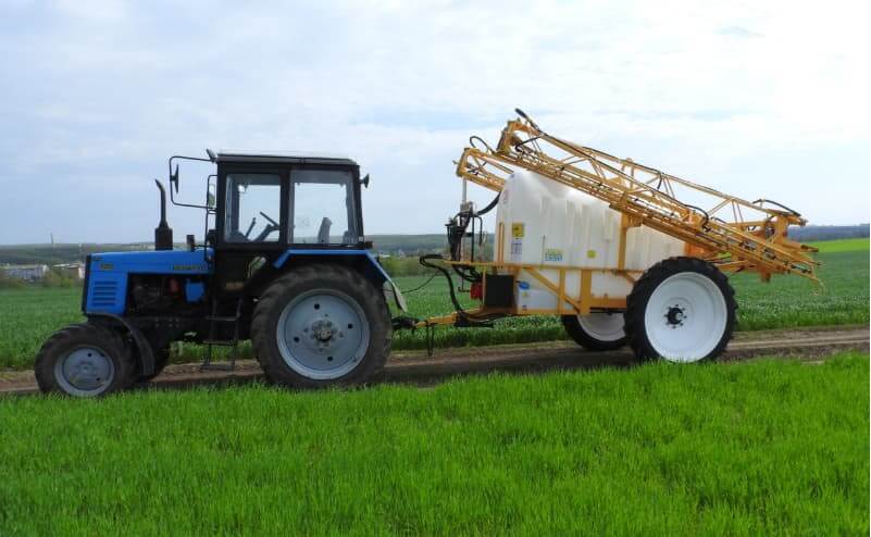 Прицепной опрыскиватель КРОНОС 3000-18. Объем бака 3000л, ширина захвата штанги 18м.
