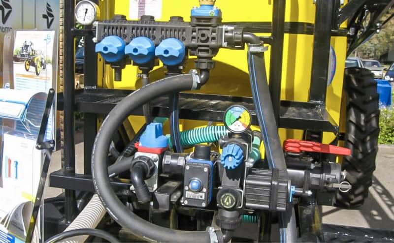 - в базовую комплектацию входит трехпозиционная форсунка (TeeJet, США) с тремя видами распылителей (TeeJet, США) для работы при нормальной и ветреной погоде, а также при обработке различных культур;