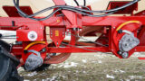 Пневматические прикатывающие катки идеально копируют рельеф поля, что позволяет производить посев на неровных полях со стабильной глубиной обработки по всей ширине захвата. На катки установлены чистики, которые разработаны специально под прикатывающие колеса. Они повторяют форму прикатки и с легкостью очищают с нее грязь. За прикатывающими колесами установлены штригеля, которые дополнительно выравнивают поле.