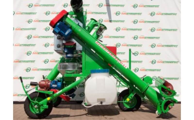 Оснащений заливним фільтром та спеціальним галогеновим прожектором для роботи в приміщеннях з недостатнім освітленням. На замовлення протруювач може комплектуватися: системою аспірації, модулем для внесення рідких інокулянтів. Додатково встановлюється програмне забезпечення для можливості роботи в режимі автоматичного регулювання подачі робочої рідини (САРР)